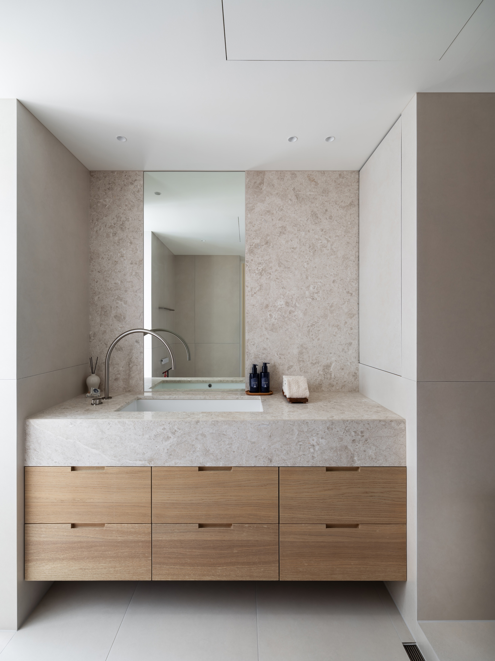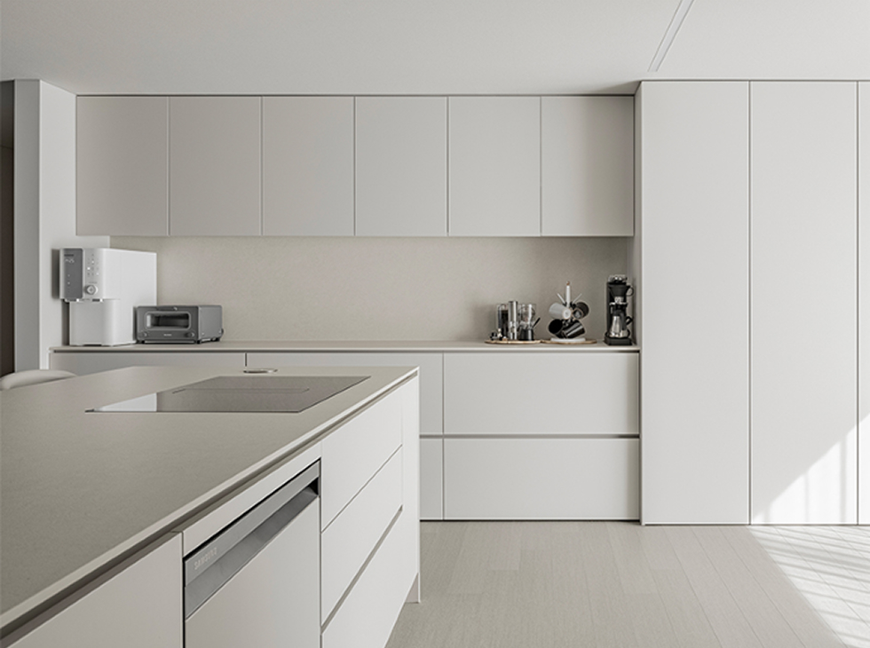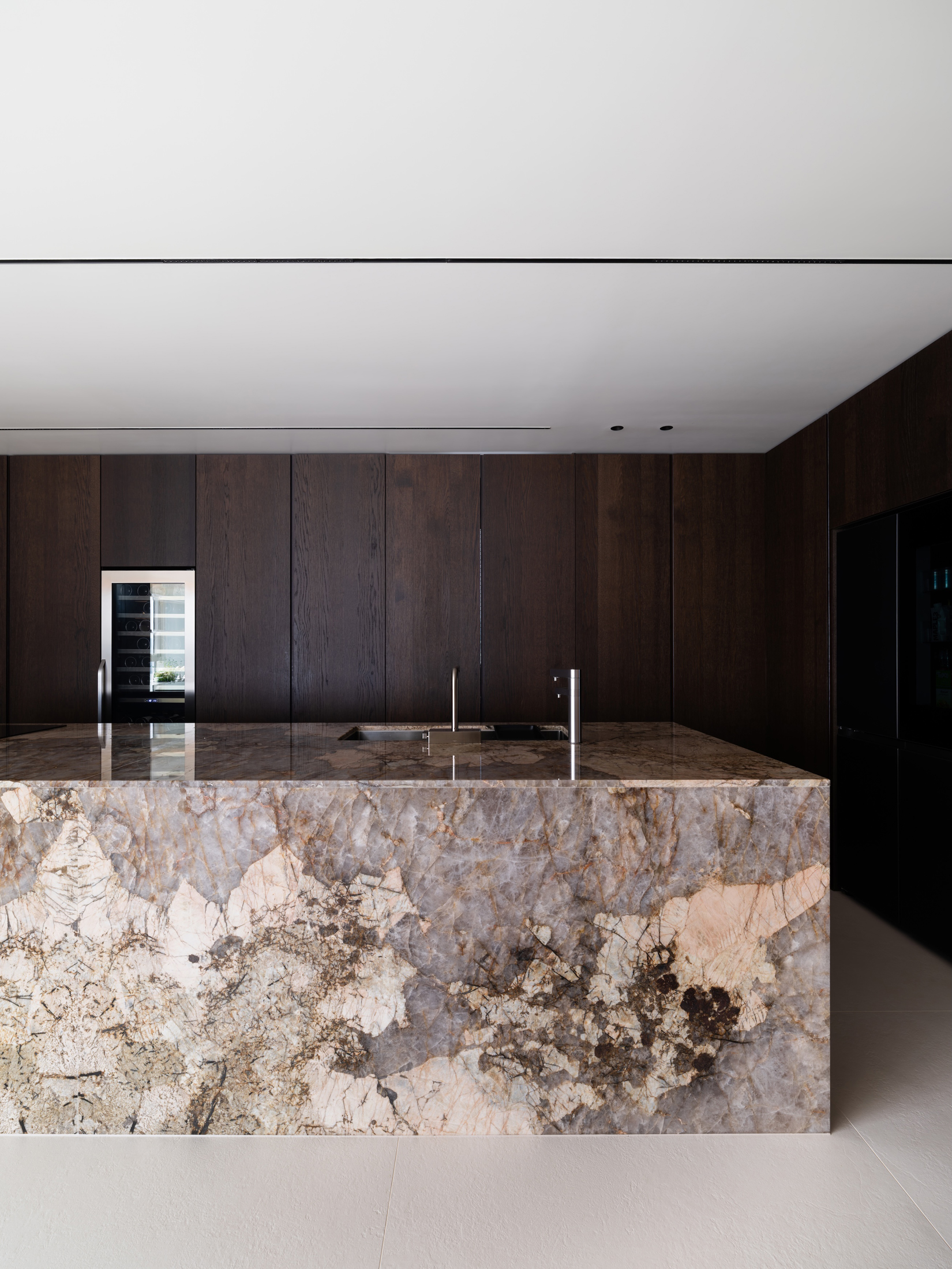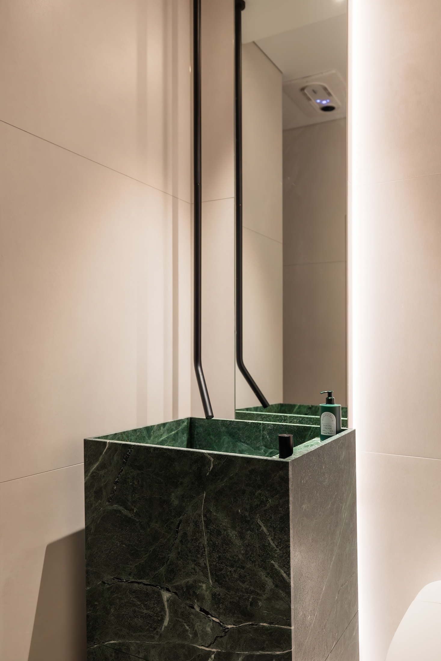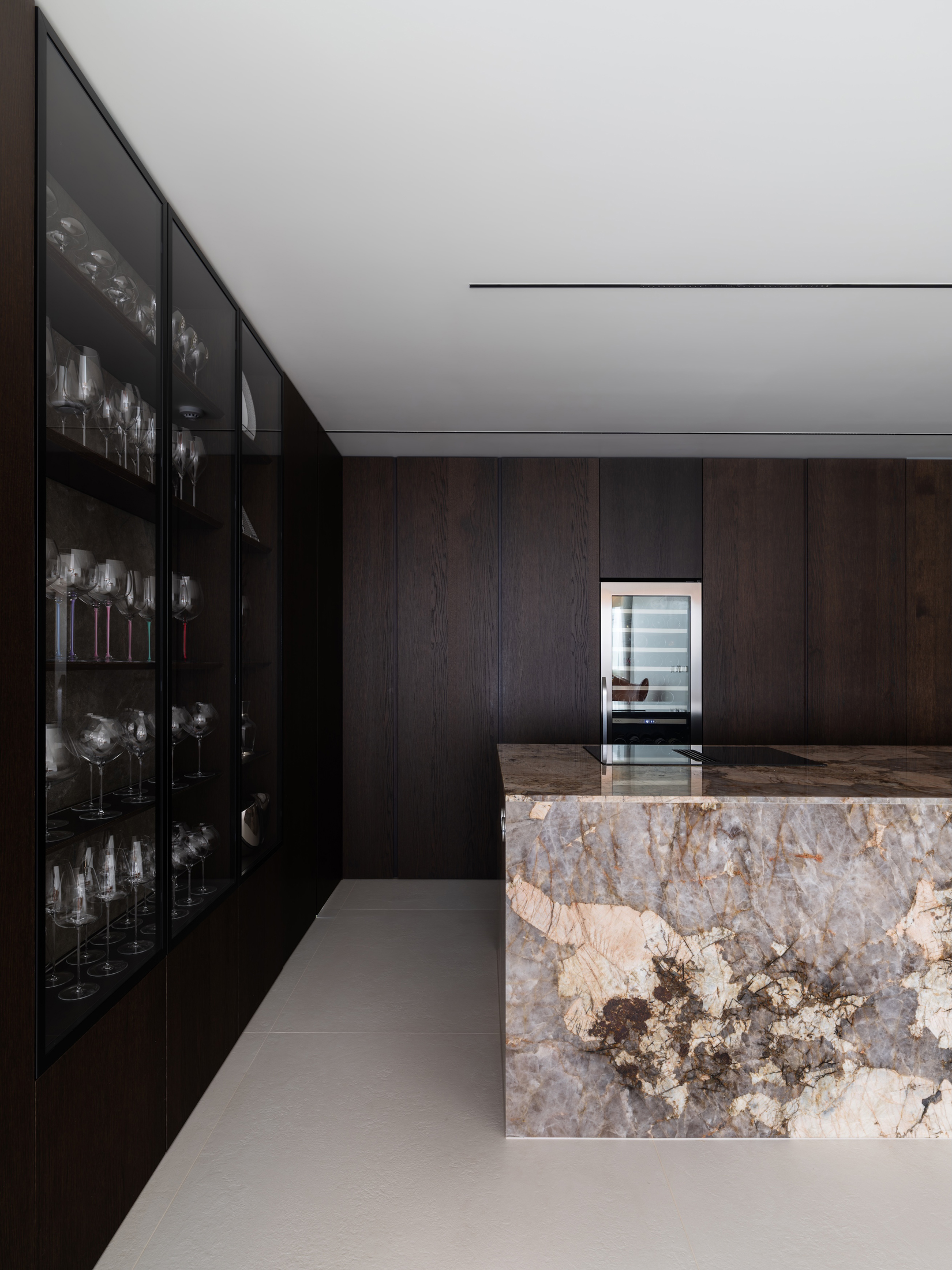 해운대 마린시티의 정점에 위치한 아델리스는 오피스텔 타입 주거 형태로 기존 평면을 개선해 필요한 공간을 극대화하는 레이아웃 작업에 매우 많은 노력을 기울인 공간이다. 불필요한 공간은 과감히 철거해서 필수적인 공간으로 편입시켜 공간을 확대했으며, 고객의 취향과 공간의 특성에 맞는 고급 마감재들로 미감이 충족되도록 설계하였다. 바다와 가장 가까운 곳에 위치한 아델리스의 아침은 윤슬에 반사된 자연광이 집안 내부를 충분히 밝히고 있다. 공간이 자연광을 충분히 머금을 수 있도록 고급도장마감으로 공간 전체를 계획했다. 사실 이번 공간의 특별함은 해가 진 이후부터 드러난다. 클라이언트와 충분히 고민해서 만들어낸 조명 위치와 개수, 그리고 조명하는 방식은 공간을 더욱 완결성 있게 만드는 핵심이었다.